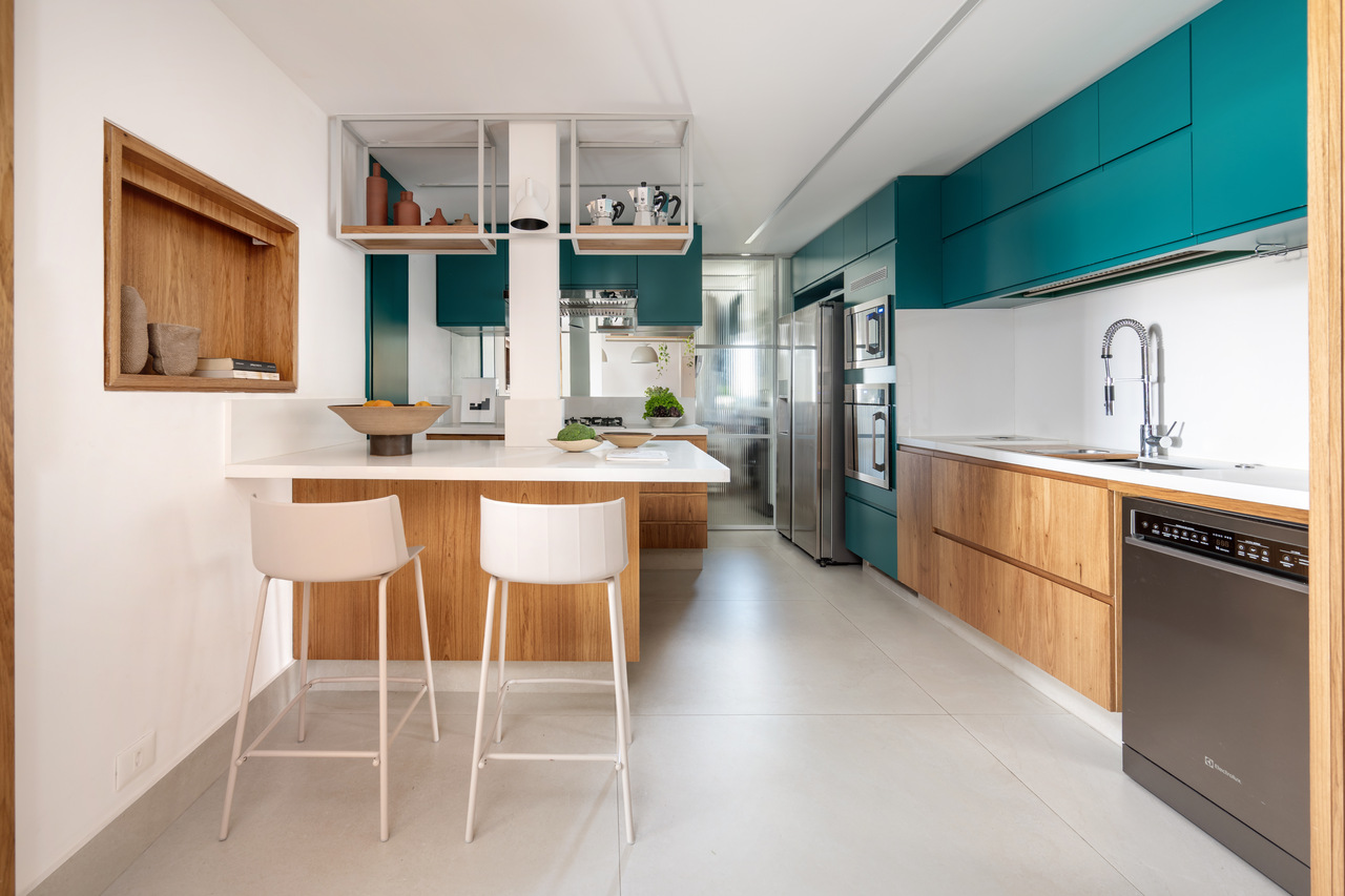 Projeto de Vivi Cirello transforma apartamento de 160 m² em Alto de Pinheiros com marcenaria criativa, cozinha integrada e soluções coloridas para a rotina da família