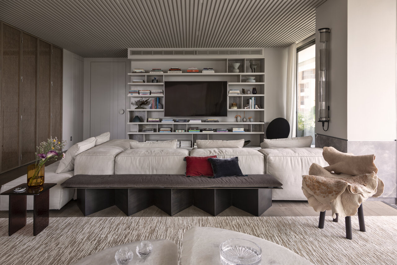 Reforma de apartamento assinada por Flávia Gerab valoriza integração de ambientes, marcenaria estratégica e design contemporâneo para atender família com três filhos