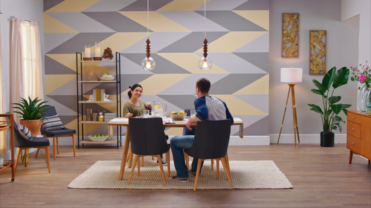 Aprenda a destacar paredes em casa com efeitos geométricos na pintura