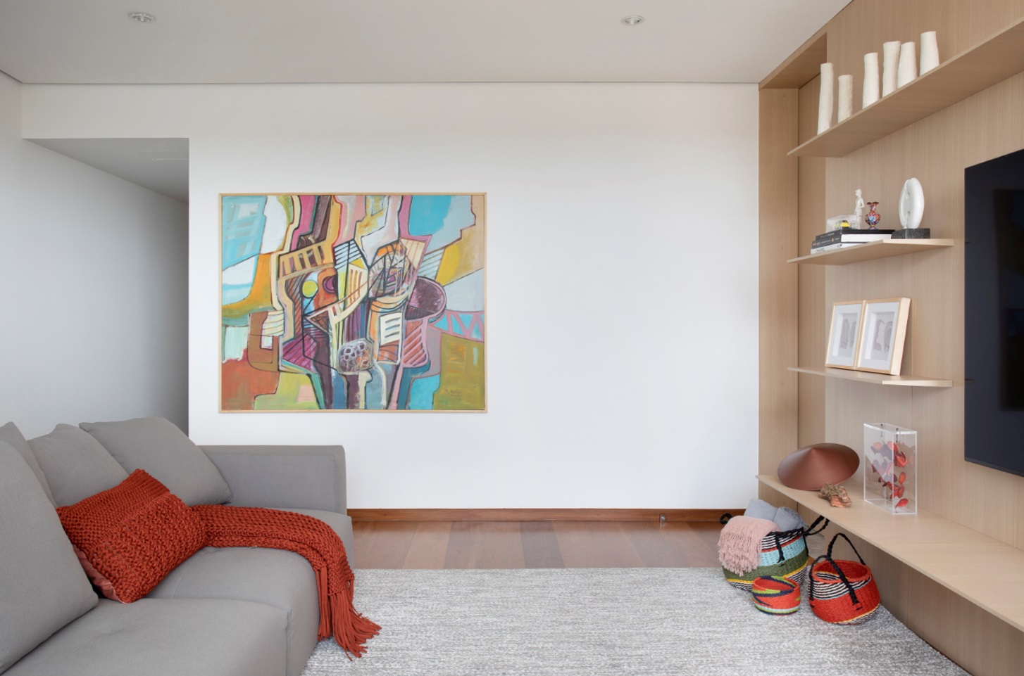 O maior desafio enfrentado pela equipe de Lucas Fernandes Arquitetos foi harmonizar o peso físico e histórico dos mobiliários com a estrutura clara e leve do apartamento. Texturas e tramas se tornaram as principais aliadas nessa missão, introduzindo jovialidade e leveza a um acervo de peças com muita histórica. O resultado é um espaço que não somente abriga um casal jovem, mas conta sua história por meio de cada objeto, cada linha e cada textura escolhida.