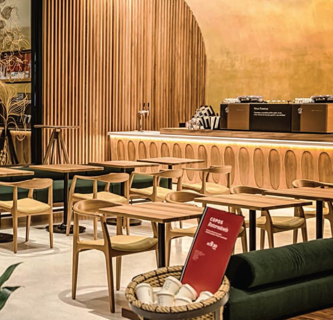 O PROJETO DA LOJA DO STARBUCKS NO AEROPORTO SANTOS DUMONT (RJ) É ASSINADO PELA ARQUITETA ANA CLÁUDIA POLETTINI