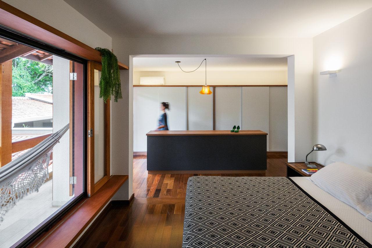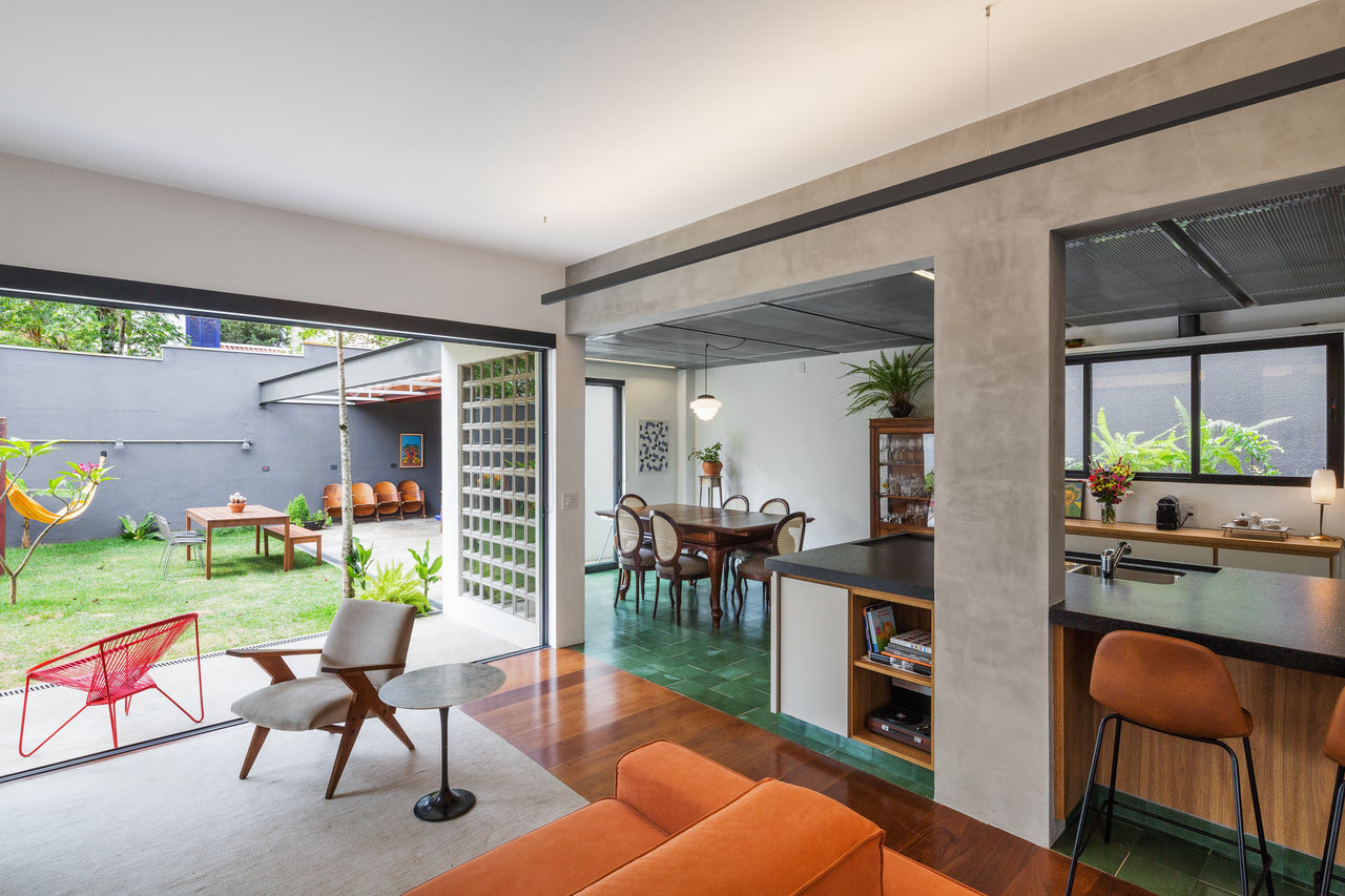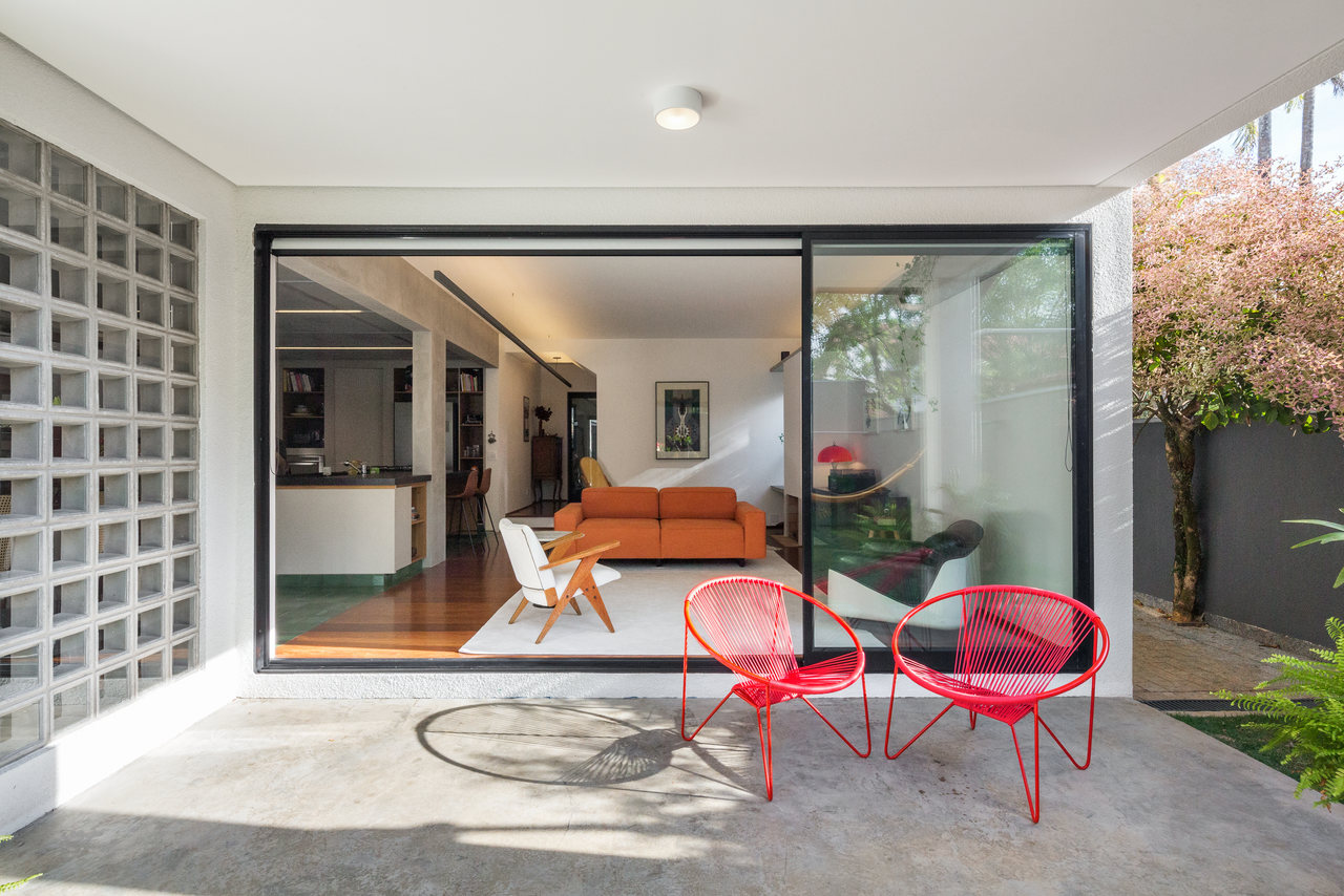 O programa do térreo passou a abrigar cozinha, salas de estar e jantar, escritório, lavabo, serviços e área de lazer (com churrasqueira e redário), que ocupam agora o pátio / jardim nos fundos do terreno. Já, as suítes ocupam o pavimento superior.