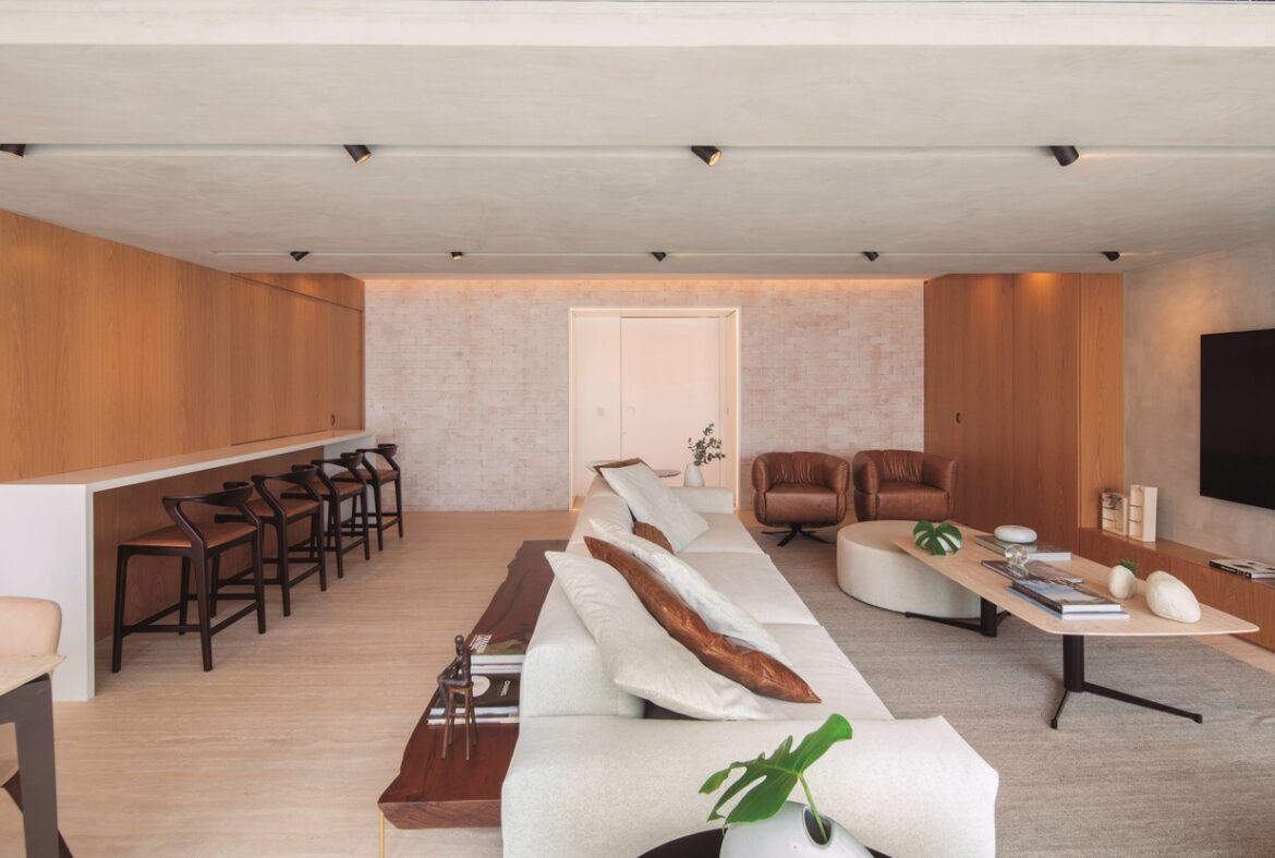 Apartamento contemporâneo modernista tem essência acolhedora