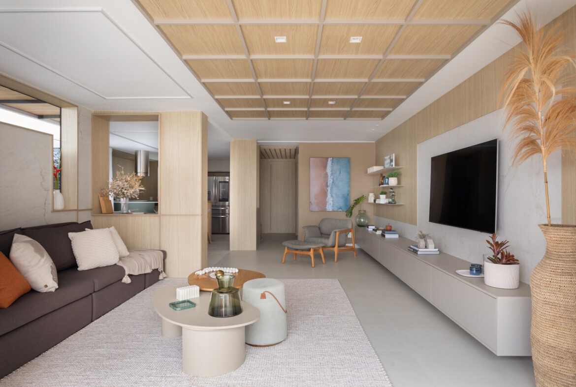 Apartamento de 180 m² aposta em madeira, luz e identidade para acolher uma família jovem