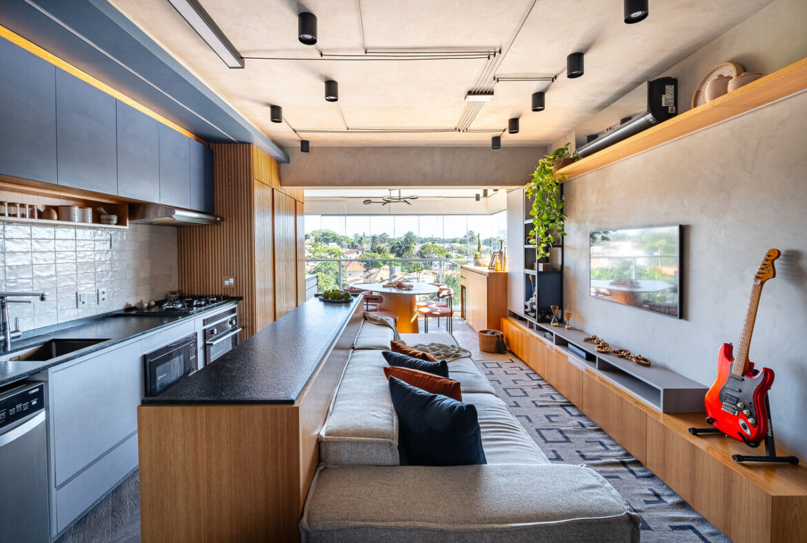 Reforma de apartamento integra ambientes, valoriza a vista e adota um estilo contemporâneo com soluções inteligentes