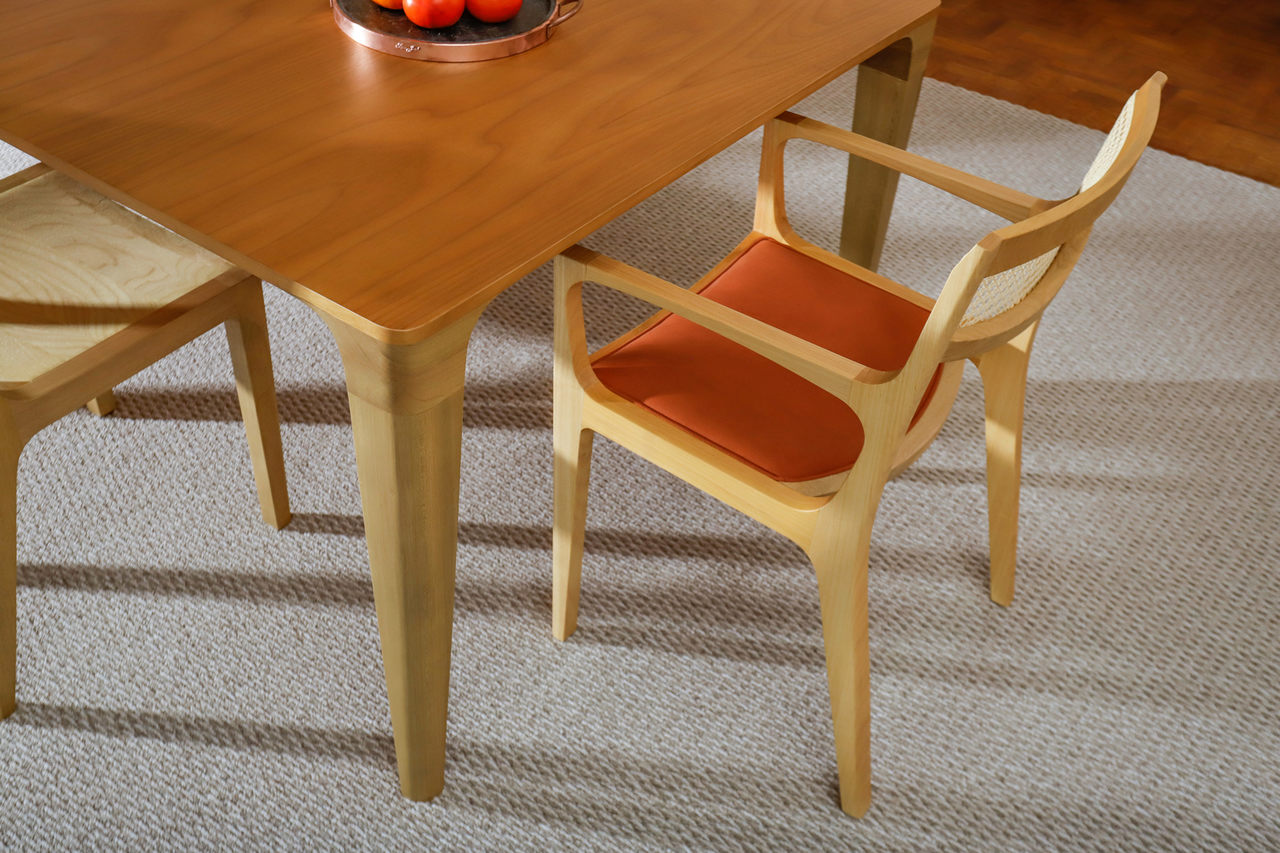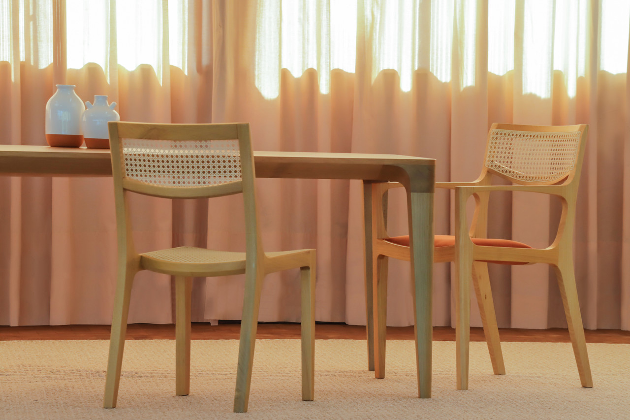 A marca apresenta a cadeira “Guapeva”, pensada para compor o conjunto de jantar, juntamente com a mesa Moema. A mesa é o referencial estético e formal que flui, e se expressa por extensão, à cadeira. Pernas com cantos arredondados, linhas curvas e chanfros, tornam a percepção dos componentes e do conjunto mais leve.