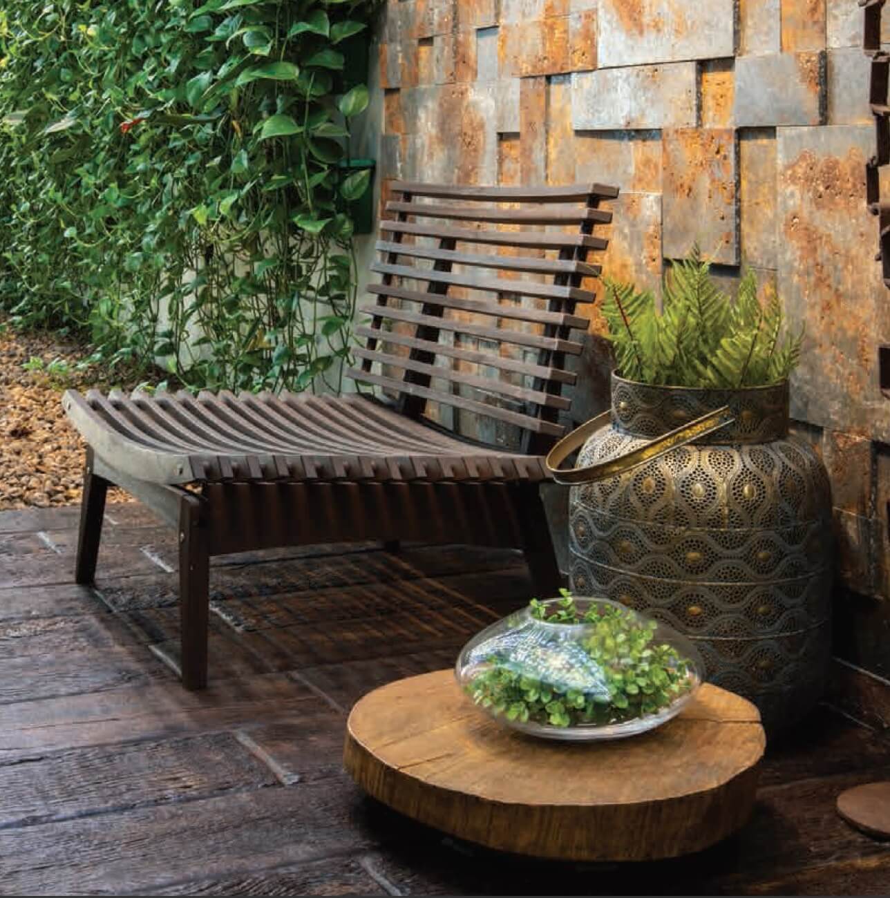 No espaço zen se destacam o móvel da Florense e a escultura MOAI, do artista Mauro Maria.