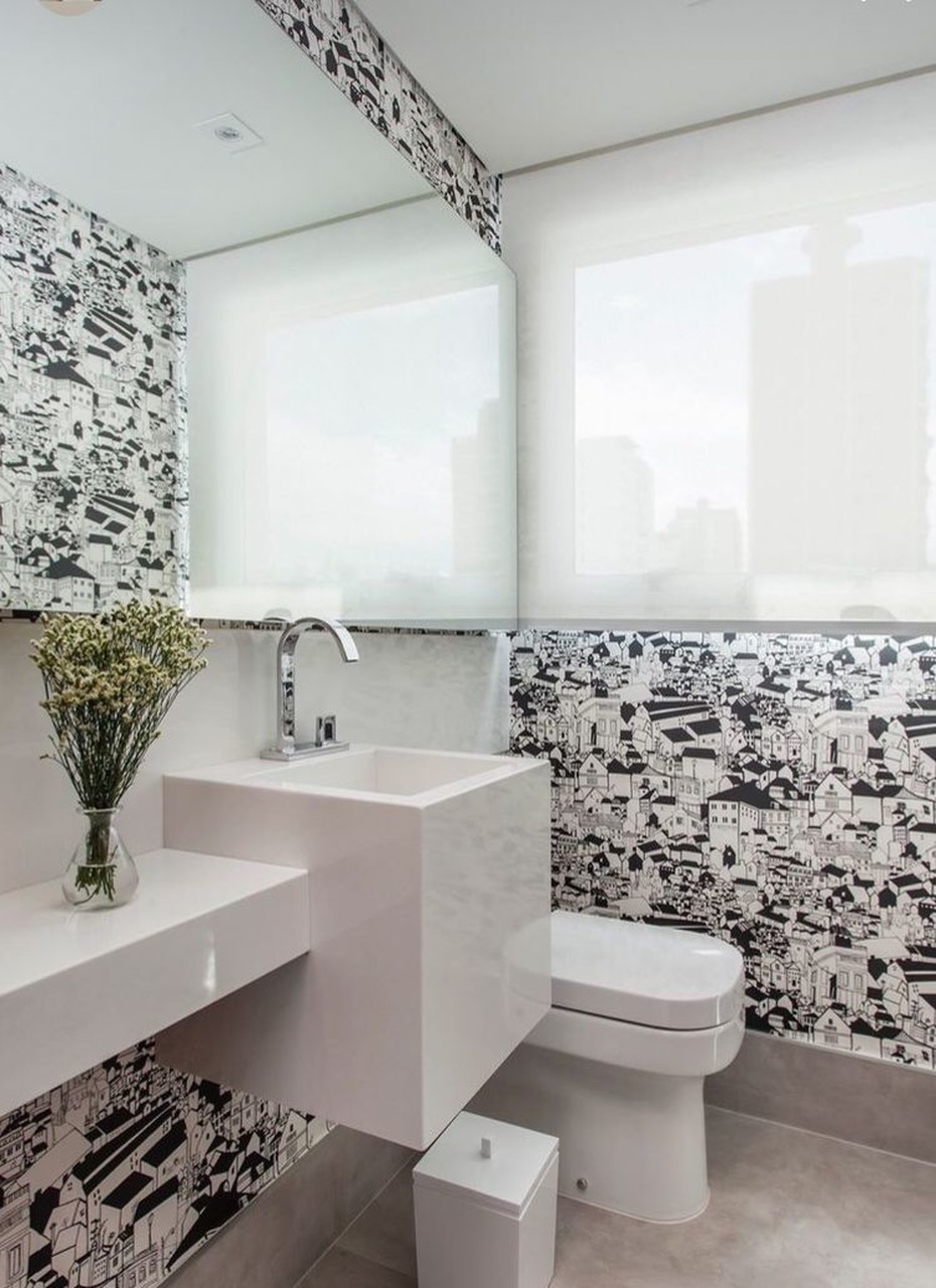 Entretanto, as profissionais são unânimes em afirmar que, embora a matéria-prima seja recomendada por ‘respirar’ melhor, sua aplicação só é efetivada se o espaço apresentar uma janela e se a utilização em si não for muito intensa. “Em um banheiro social, que atende mais a função de um lavabo, esse papel de parede pode se adequar perfeitamente. Sabendo que o vapor nesse banheiro será ocasional, podemos sim considerar sua presença no décor”, complementa Giselle.