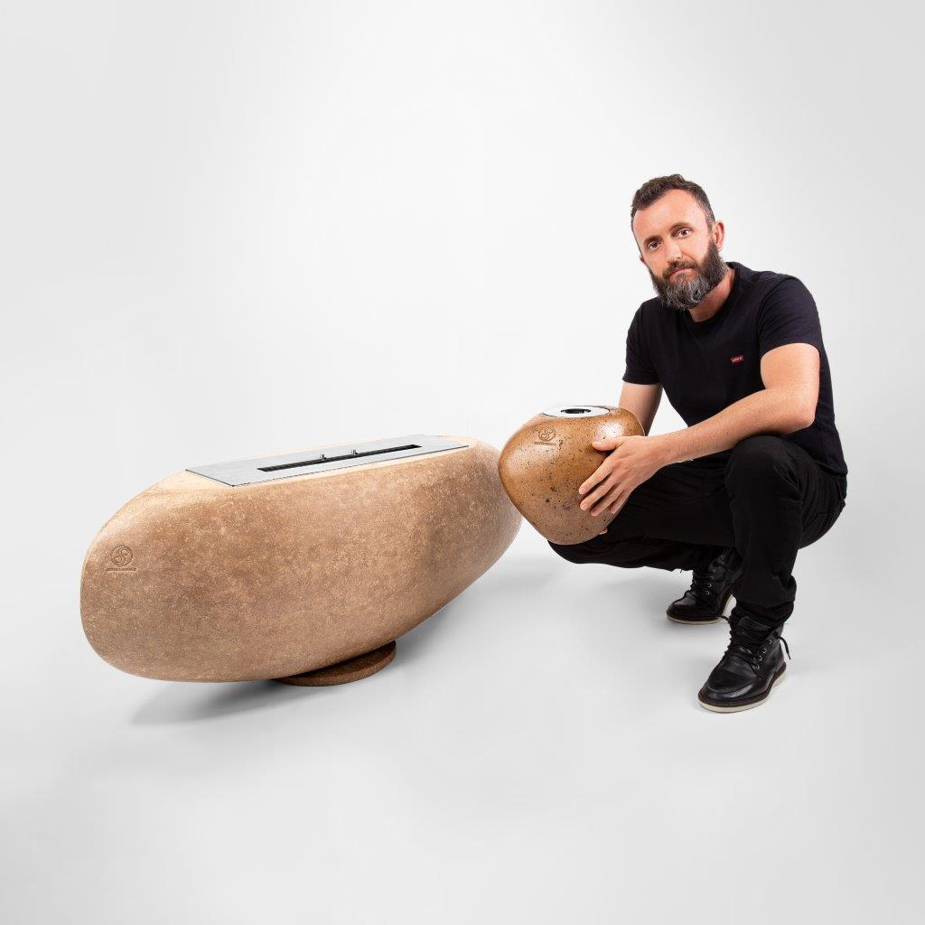 João Paulo Raimundo assina lareiras em papier mâché para a Coleção Caminhos das Pedras da Ecofireplaces