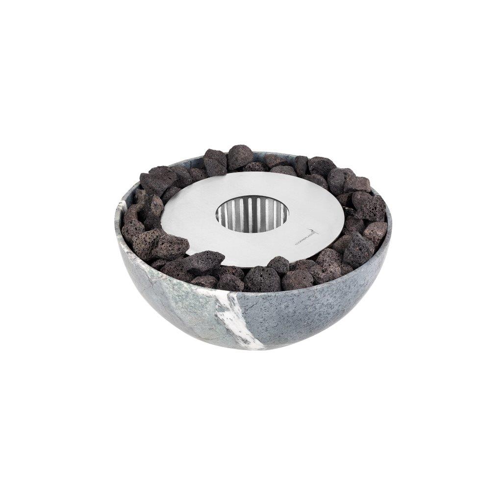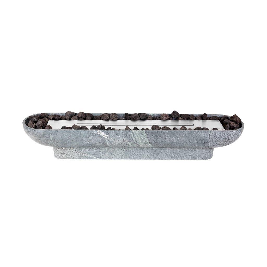 “A ideia central foi resgatar a pedra como agente intermediário na criação do fogo e, assim, procurei entender como o material e a Ecofireplaces poderiam estar presentes no dia a dia das pessoas sem que fossem vistos apenas como um dispositivo. Logo, procurei entender os motivos de se criar uma fogueira: reunir pessoas, conversas, aconchego, uma boa comida… e ficou claro que o resultado deveria ser uma mesa de centro”, explica Bruno.