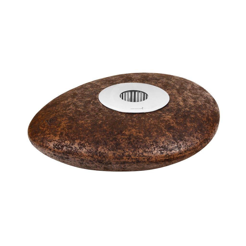 Em uma proposta ousada e inédita no mercado, ele criou vinte lareiras exclusivas e limitadas em papier mâché com um design orgânico que remete à natureza das pedras. As peças resgatam a origem do fogo primitivo, a faísca através da pedra, e unem dois elementos improváveis: o papel e o fogo.
