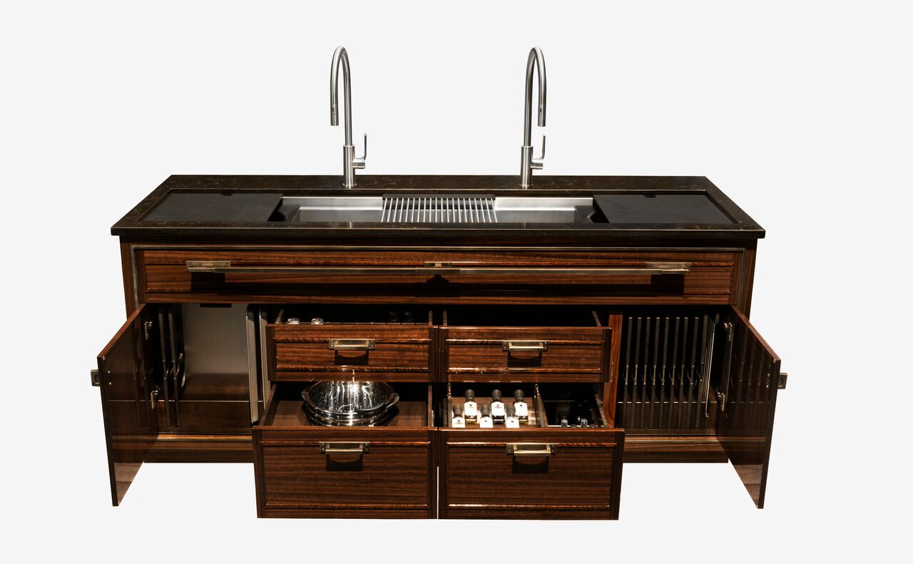 Conjunto The Galley – Estação de trabalho modular, junto com seu exclusivo armário feito sob medida.