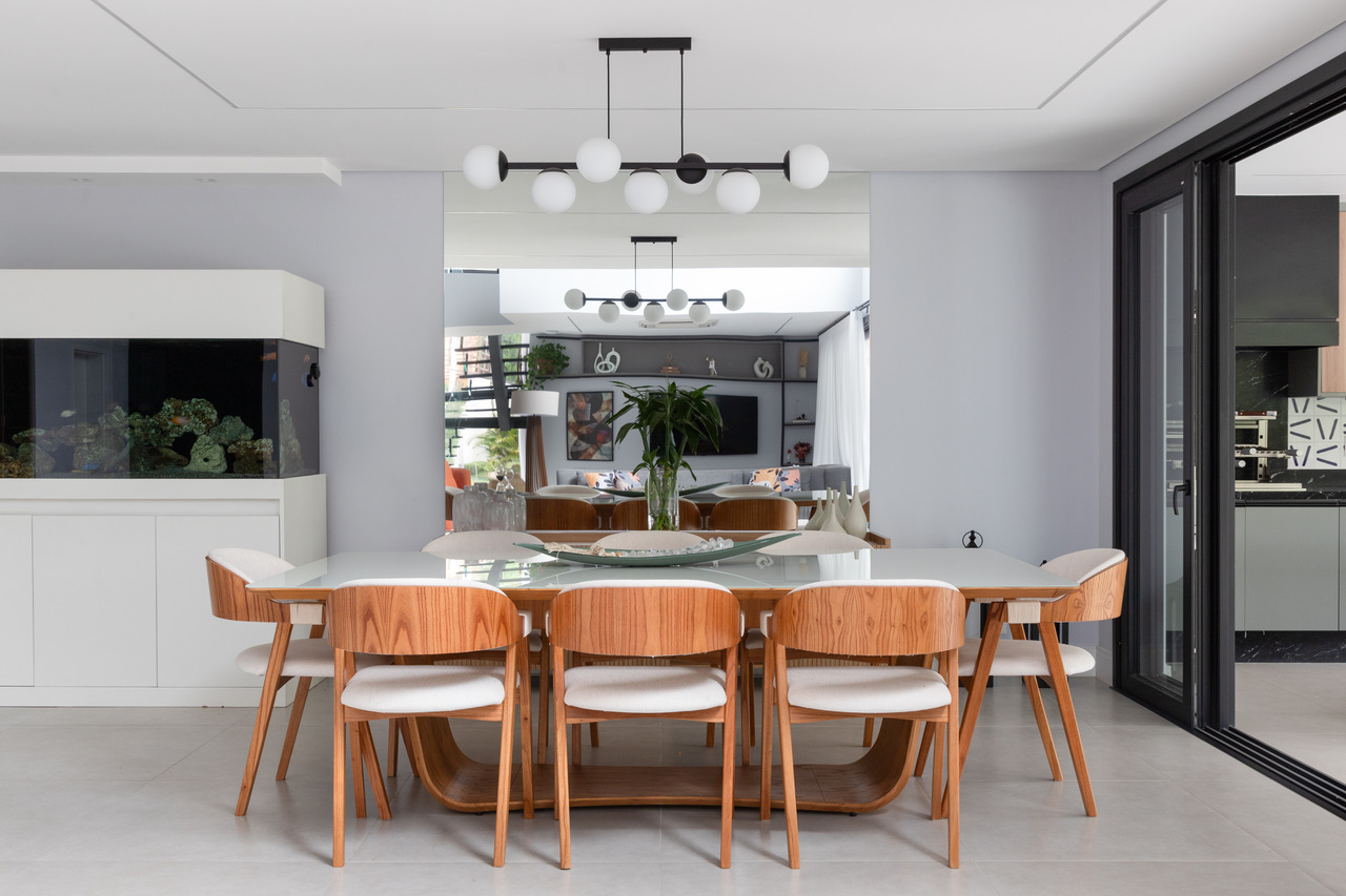 Pensada para atender às necessidades do casal e de seu filho de 10 anos, a casa reflete um estilo de vida prático e acolhedor. Um dos destaques é o gatil, que atende ao amor da família por animais. O espaço para um aquário e o campo de futebol também são exemplos de como o projeto foi moldado para os moradores, trazendo um equilíbrio entre lazer e funcionalidade.