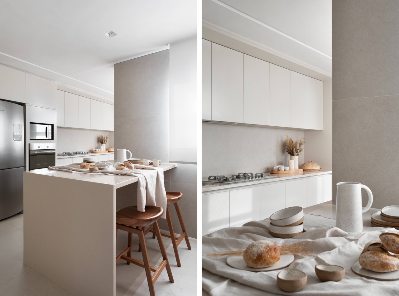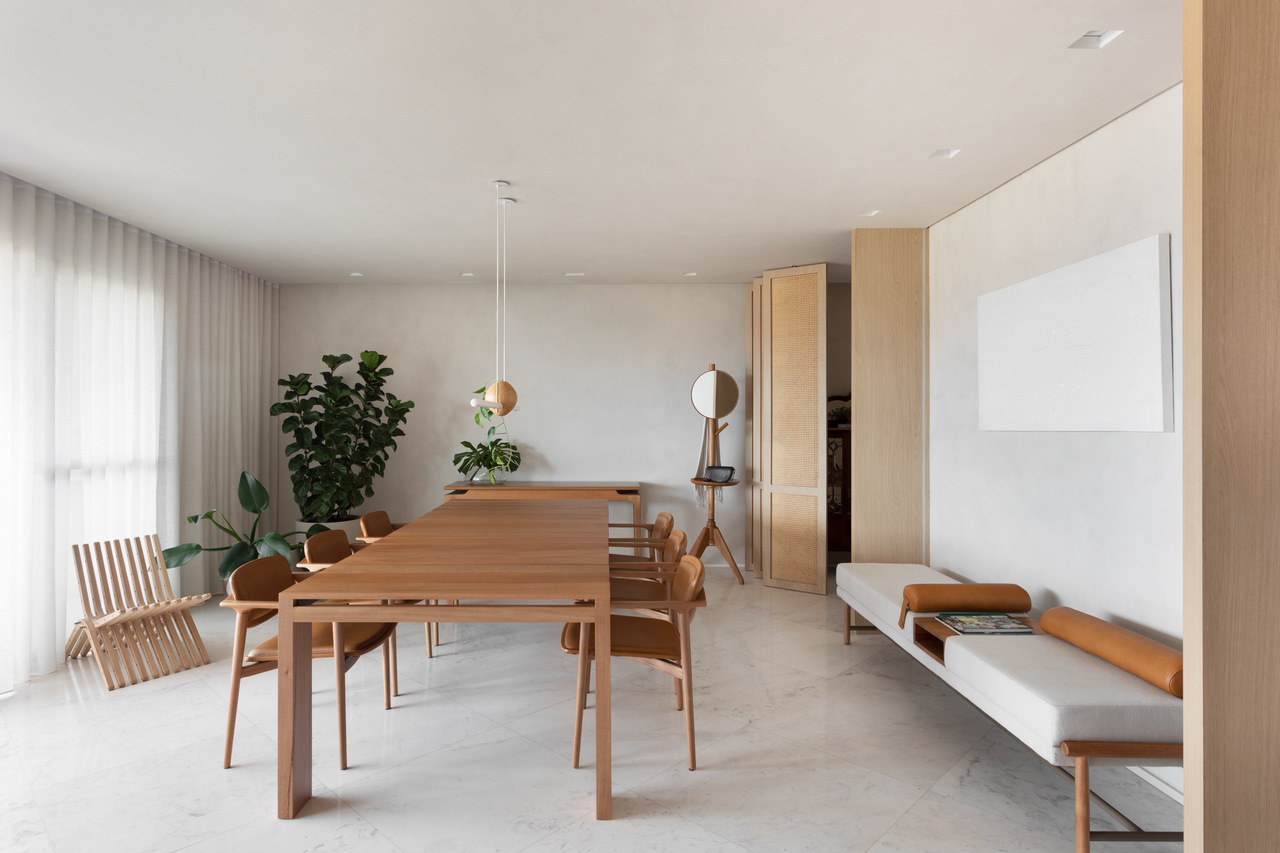 As arquitetas costumam dizer que “Enquanto lá fora o mundo está mais frenético que nunca, dentro das nossas casas buscamos harmonia: sem excessos, com peças com mais qualidade e menos quantidade e objetos que trazem paz e conforto visual”. Além de carregar uma frase de Dieter Rams que traduz bem esse conceito: “limit everything to the essential, but do not remove the poetry”, pequenos detalhes, bem posicionados, que emergem de uma composição leve trazendo poesia ao espaço.