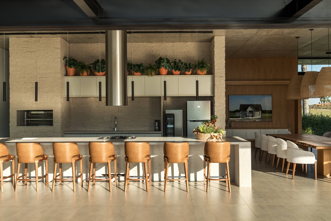 O projeto de interiores desta área de lazer em Piraquara, na região metropolitana de Curitiba, assinado pelas arquitetas Camila Trombini e Luiza Monclaro, do ARQ+CO Studio, transforma o cenário de um haras em um refúgio contemporâneo e cheio de personalidade. Com 559m², o espaço foi concebido como complemento à casa principal dos proprietários, já existente no local e projetada pelo arquiteto Ricardo Amaral, que também assina o projeto arquitetônico do novo espaço. O ambiente, com intuito de ser palco para momentos especiais entre amigos e familiares, nasce com uma proposta de conforto e versatilidade.