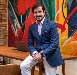 Antes de seguir carreira no mundo da decoração, Felipe de Almeida se formou em administração. Cursou a Escola Panamericana de Design de Interiores e desde então, atua há seis anos em projetos residenciais e comerciais em seu próprio escritório. Seu trabalho visa a relação do homem com o seu lar, com foco no projeto de espaços que aproximam as pessoas e estabeleçam a conectividade afetuosa. Para o designer, a casa é onde se processa a vida cotidiana e que se mistura as lembranças junto da criação de novos momentos.