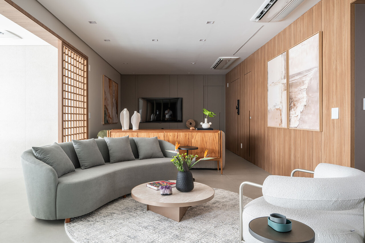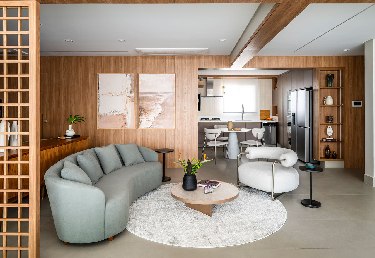 Com ambientes integrados, marcenaria sob medida e uma paleta de tons suaves, projeto em São Paulo assinado por Érica Salguero transforma apartamento em um refúgio contemporâneo que equilibra funcionalidade, elegância e acolhimento