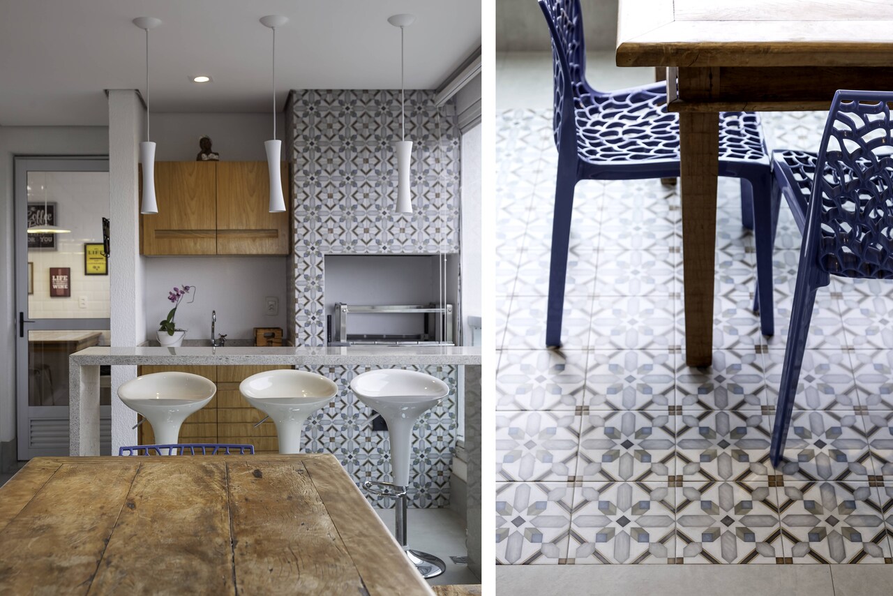 No caso das pastilhas ou peças hexagonais, vale a mesma ideia. Segundo a profissional, é possível encontrar modelos de porcelanatos ou cerâmicas que tenham índices de absorção baixos, mas que apresentem o mesmo visual nostálgico das peças de época. Enfim, a gama de possibilidades é bem grande.