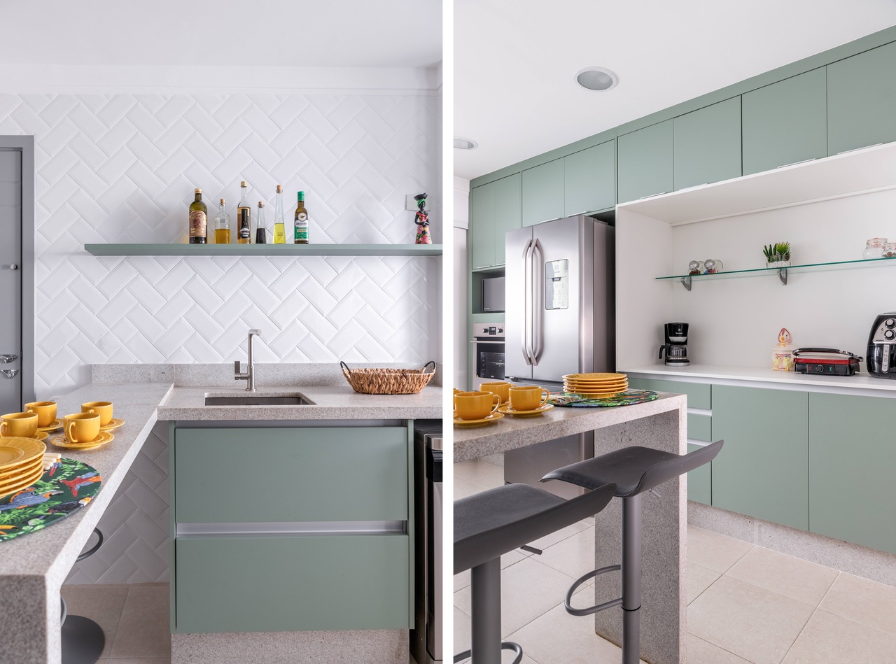 Por fim, Cristiane revela qual é o principal desafio em compor uma cozinha retrô. “É essencial ficar de olho na harmonia do ambiente. Em geral, o cliente deseja colocar muitos elementos bonitos num lugar só, mas é preciso ser seletivo. Portanto, o projeto é feito também de escolhas, daquilo que você tem que abrir mão. O ideal é eleger aquilo que mais te agrada, escolher os materiais que equilibrem essa estética da cozinha, sem perder mão da funcionalidade, conclui.