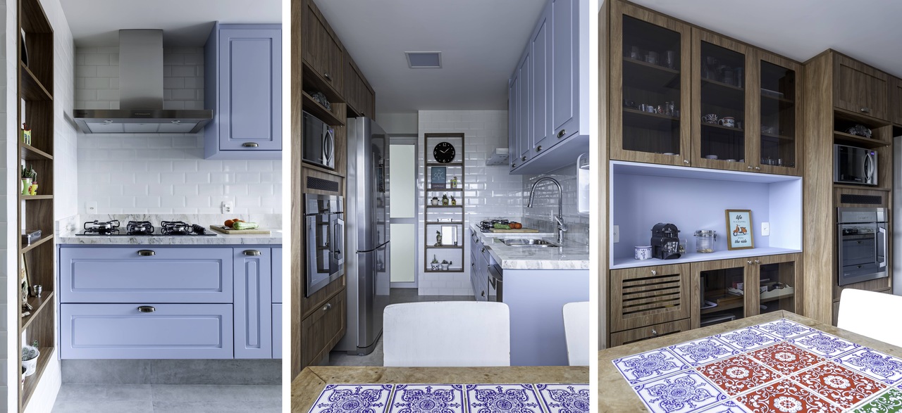 Para quem ama uma cozinha bela e prática, saiba que é possível utilizar a modernidade a seu favor. “Hoje, temos muitos materiais com o design retrô, mas que são recém-lançados no mercado. Entre os exemplos estão os porcelanatos que possuem visual de ladrilhos hidráulicos e oferecem grande variedade de estampas. Dessa maneira, você consegue ter a funcionalidade de um produto impermeável e fácil de limpar, juntamente com a inspiração das décadas anteriores”, orienta a arquiteta.