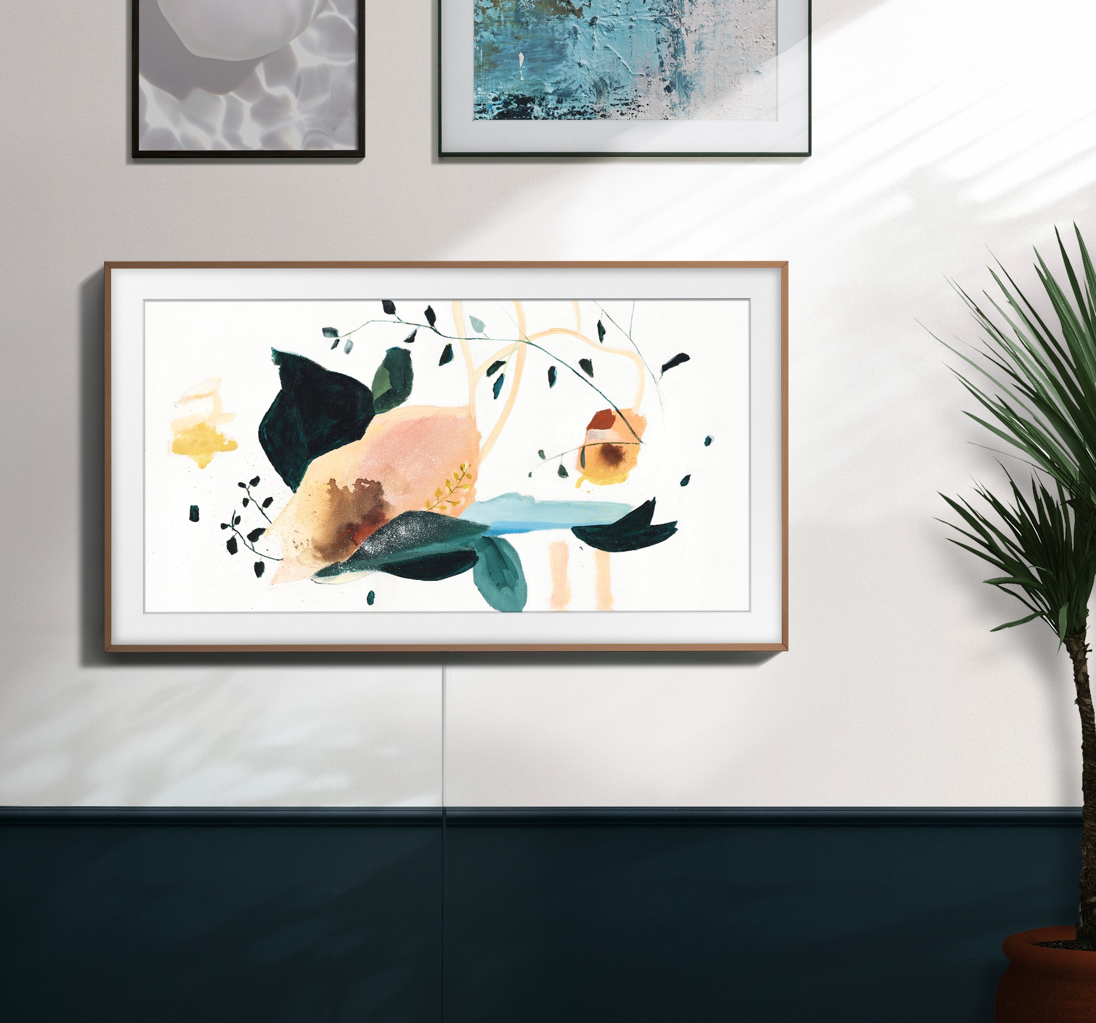 Um dos destaques da Samsung neste ano de 2020 foi o lançamento da The Frame. Quando ligada, a TV transmite imagens de alta qualidade, com resolução 4K e HDR Premium. Quando desligada, a The Frame TV ativa o “modo arte” e se transforma literalmente em um quadro personalizável, com pinturas e fotografias internacionalmente reconhecidas, ou fotos pessoais do próprio usuário.