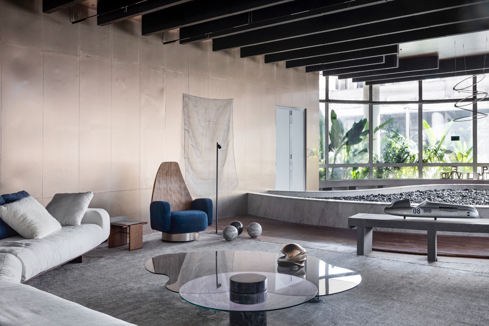 Apostar em tons metalizados com algum tipo de textura é também vem sendo uma solução prática para quebrar a monotonia frequentemente associada a projetos baseados em paletas e elementos neutros. Texturas foscas e ranhuradas introduzem nos ambientes diferentes experiências sensoriais, sobretudo táteis, criando um dinamismo que pode ser interessante, sobretudo, para espaços mais amplos em altura e profundidade. Por falar em dinamismo, aplicar tons metalizados é uma forma eficaz de destacar volumes arquitetônicos projetados em formas orgânicas, valorizando o desenho sem que ele roube exageradamente toda a atenção para si.