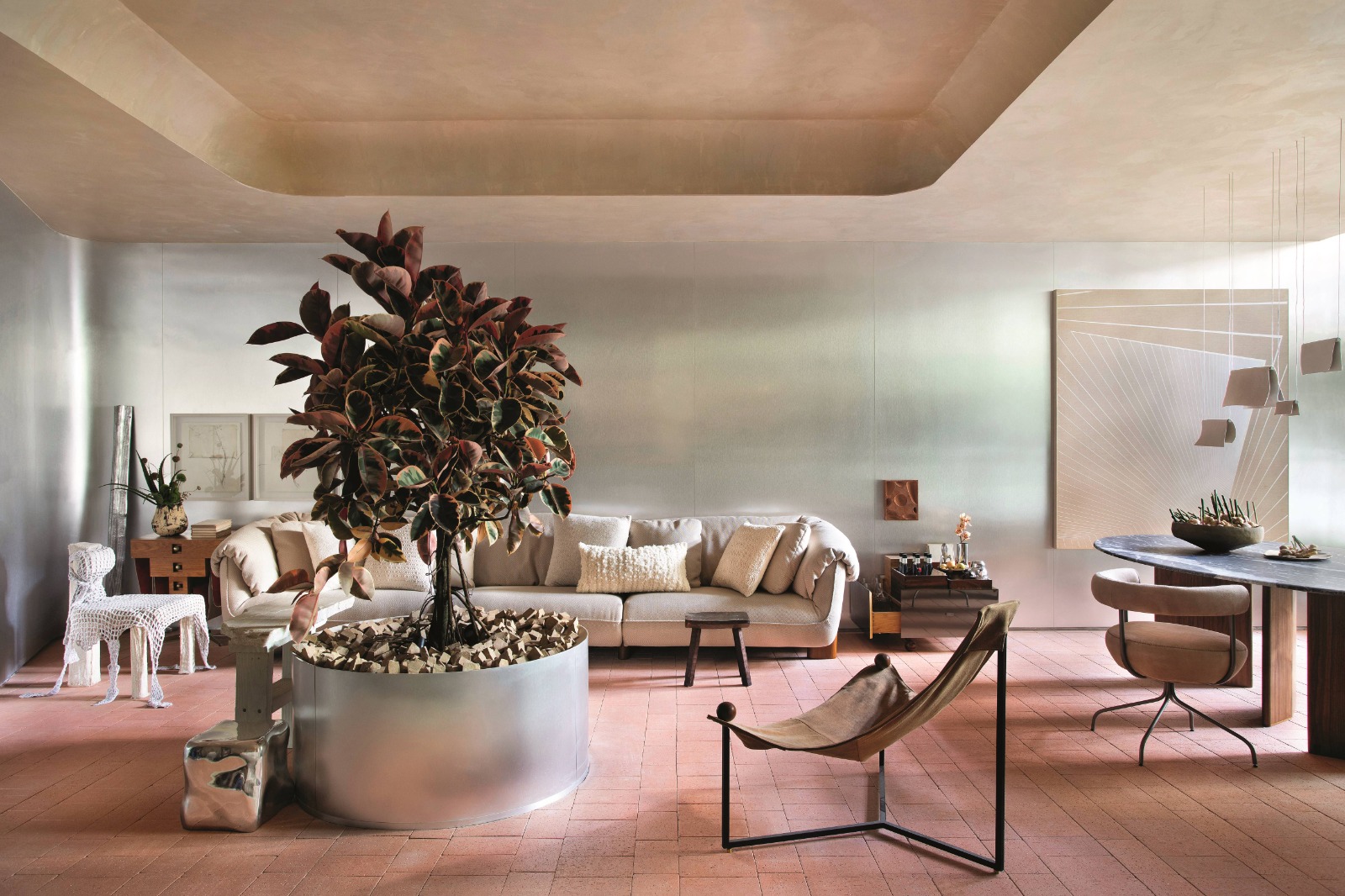 Aplicados no décor, o visual dos metais agrega nobreza e sofisticação aos ambientes, o que fez muita gente a acreditar que, tal como ocorre com esses materiais em seu estado natural, quanto mais você tiver, melhor. “É um visual que aguça os sentidos, e isso levou a um uso exagerado dos tons metalizados no passado. Acreditava-se que uma casa só poderia ser considerada elegante se ela ostentasse isso”, explica a arquiteta Bruna Ronconi, responsável pela área de tendências da Formica. O receio de ser taxado de antiquado fez o interesse em torno dos acabamentos metalizados esfriar, abrindo espaço para uma abordagem considerada mais segura em torno dos acabamentos neutros nos últimos anos. Esse medo de errar, contudo, está com os dias contados. Cenário ideal para que os tons metalizados voltassem com tudo, agora em uma abordagem mais contemporânea e versátil, justamente para ser mais receptiva a outras propostas, inclusive a neutra.