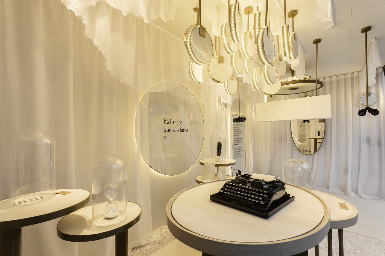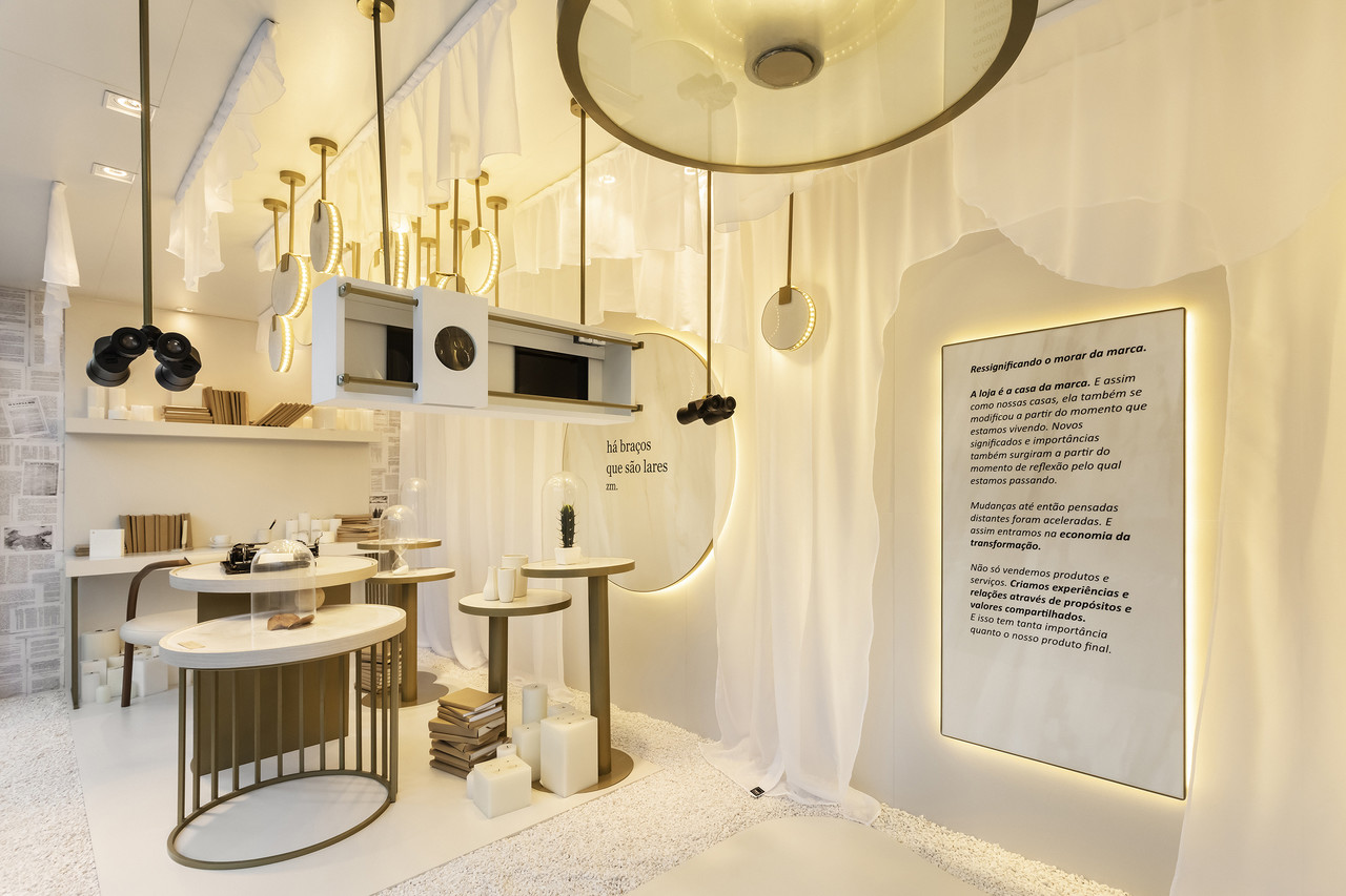 Os objetos remetem ao lugar “onde mora nossa alma”, com tecidos fluídos e iluminação a velas, ressaltando ideias de auto-cuidado, contato com a natureza, foco em si mesmo, valorização do tempo e da presença.