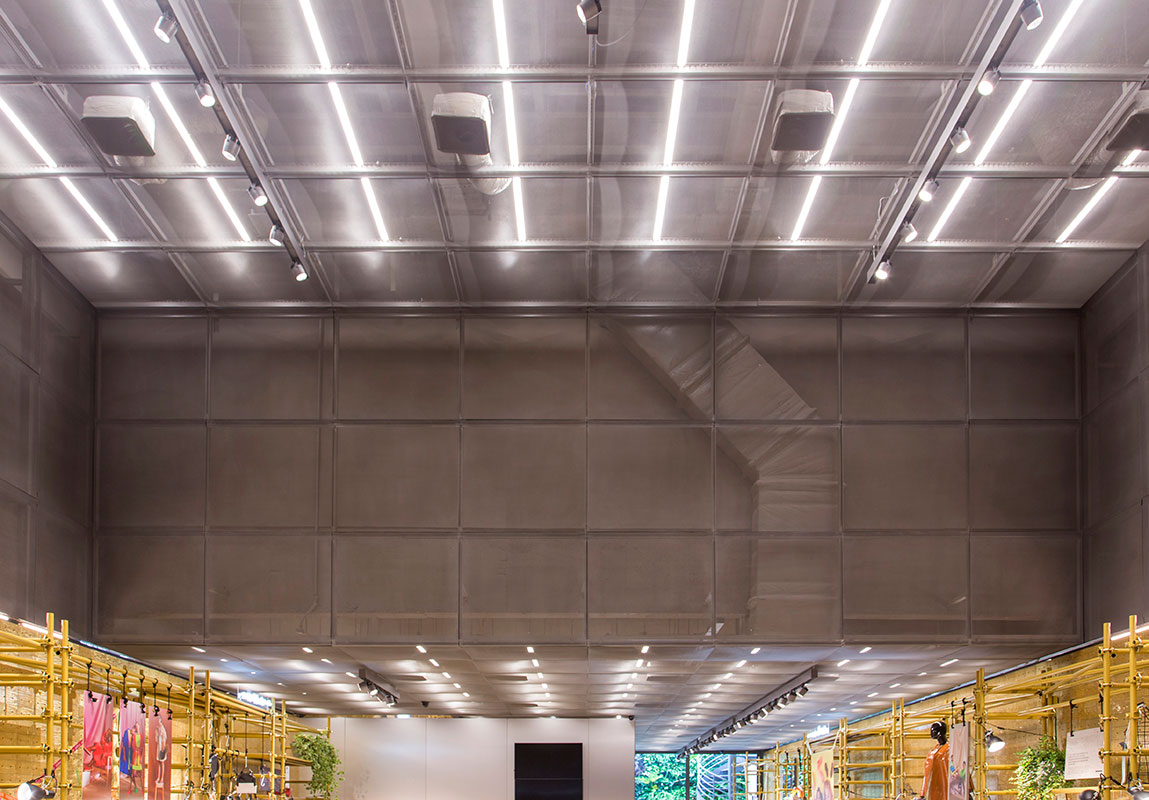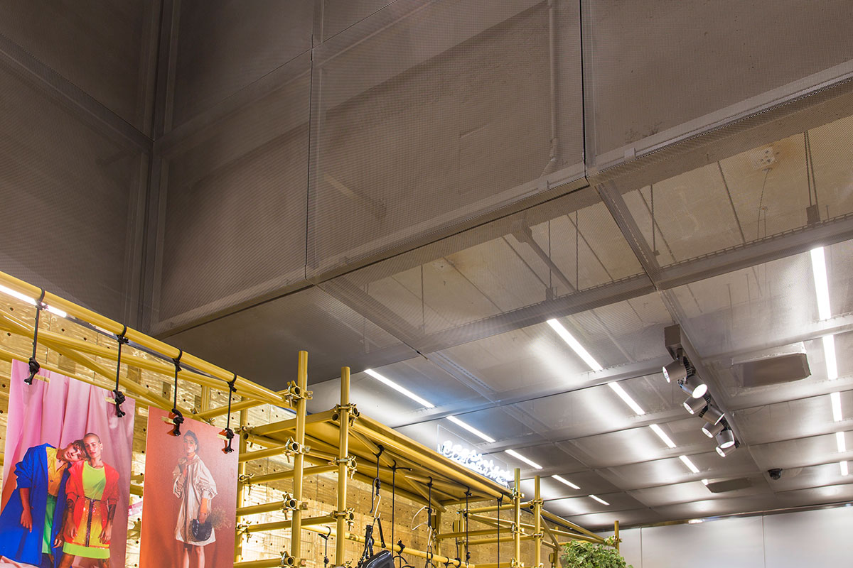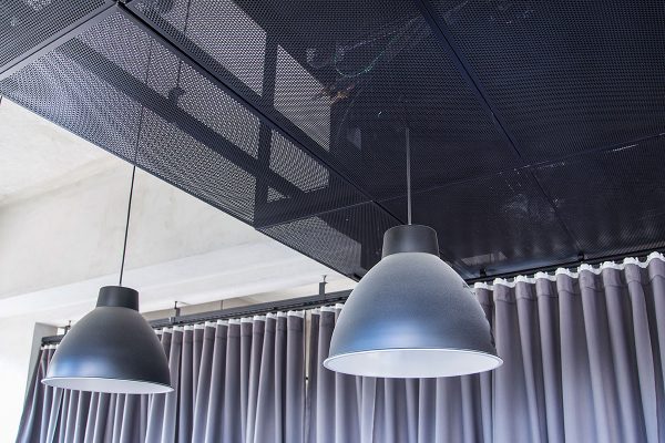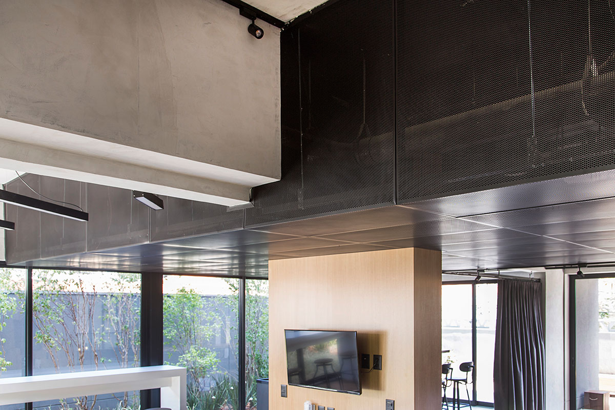O metal expandido e o perfurado são muito funcionais quando usados ​​como forros, já que podem ocultar instalações, sistemas de ventilação e sprinklers e, ao mesmo tempo, garantir a segurança e a passagem de ar.