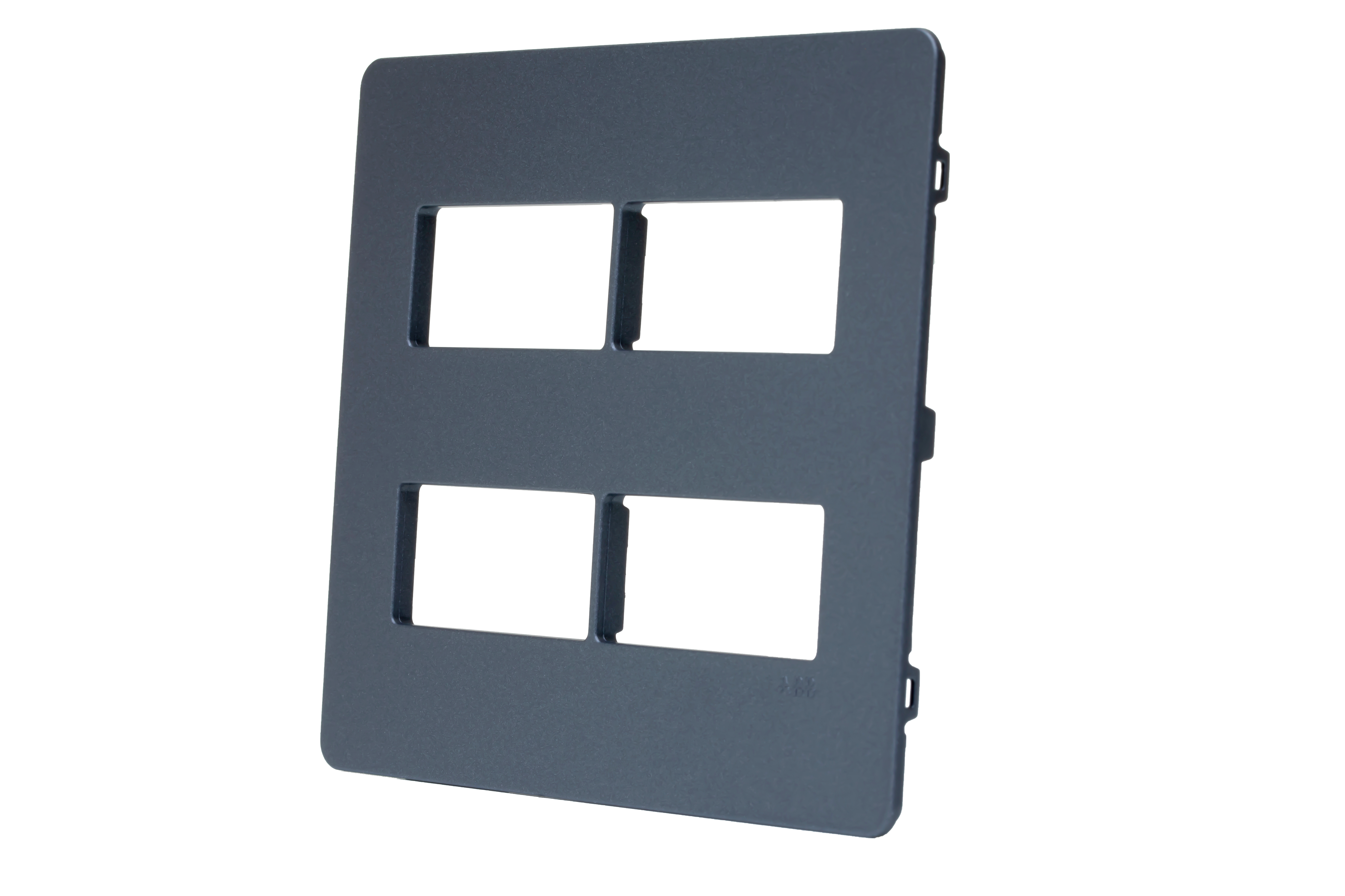 As placas 4×4 de 2+2 módulos separados grafite N1672.4 GF da linha Unno e Unno Life ABB são fabricados em policarbonato, o que garante um melhor manuseio e mais resistência do produto, a proteção UV protege a cor original do produto mesmo sob exposição ao sol, protegendo-os contra “amarelamento”. O material também apresenta facilidade de limpeza, basta utilizar um pano úmido com água que não seja abrasivo ao plástico.