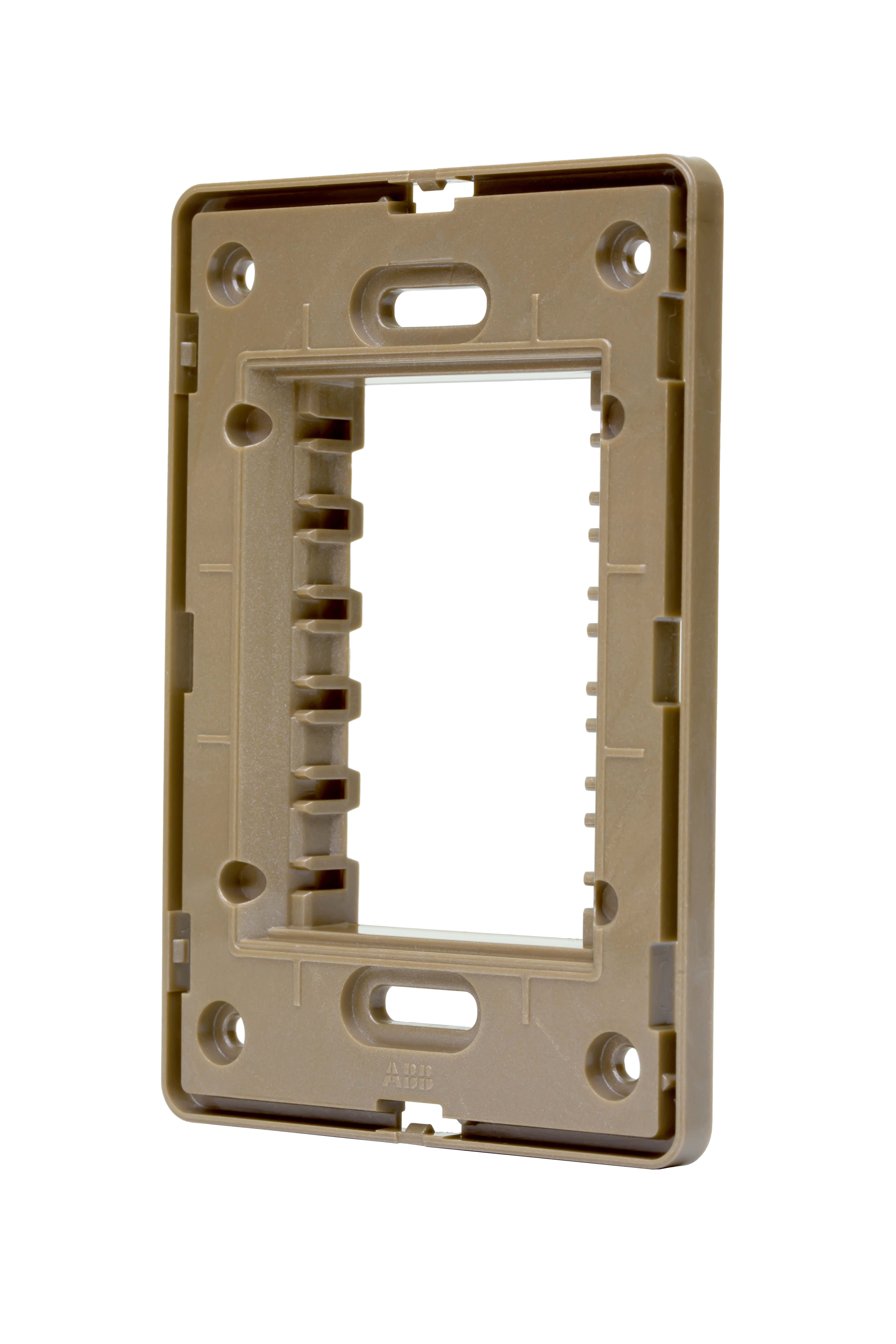 Os suportes 4×2 dourado N1373.9 DO da linha Unno e Unno Life ABB são fabricados em policarbonato, o que garante um melhor manuseio e mais resistência do produto, a proteção UV protege a cor original do produto mesmo sob exposição ao sol, protegendo-os contra “amarelamento”. O material também apresenta facilidade de limpeza, basta utilizar um pano úmido com água que não seja abrasivo ao plástico.