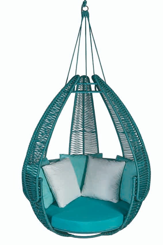 O balanço Camapú Casulo tem acabamento em alumínio e corda náutica na cor azul Tiffany. Perfeito para relaxar e decorar varandas.