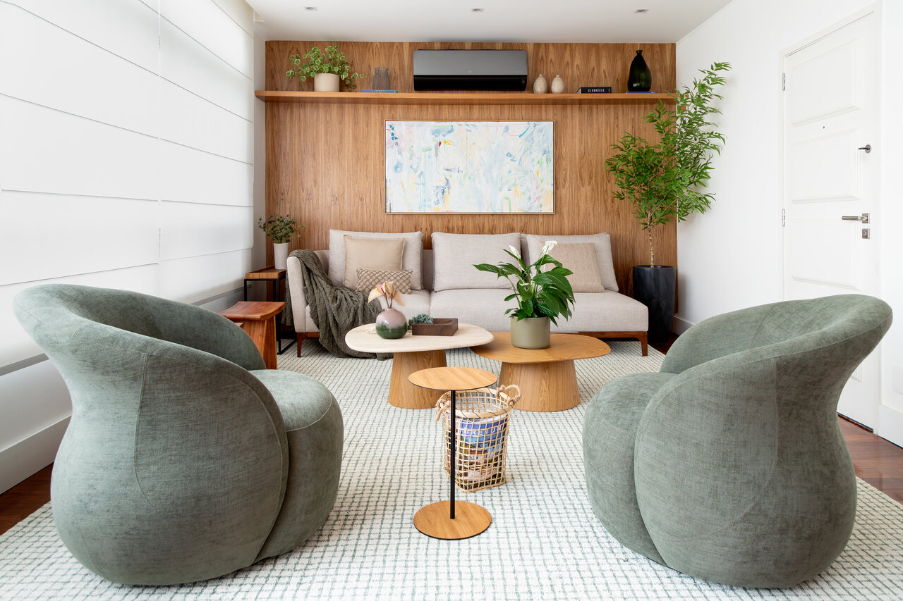 Projeto assinado por Fernanda Medeiros transforma sala e home office de apartamento no Rio de Janeiro