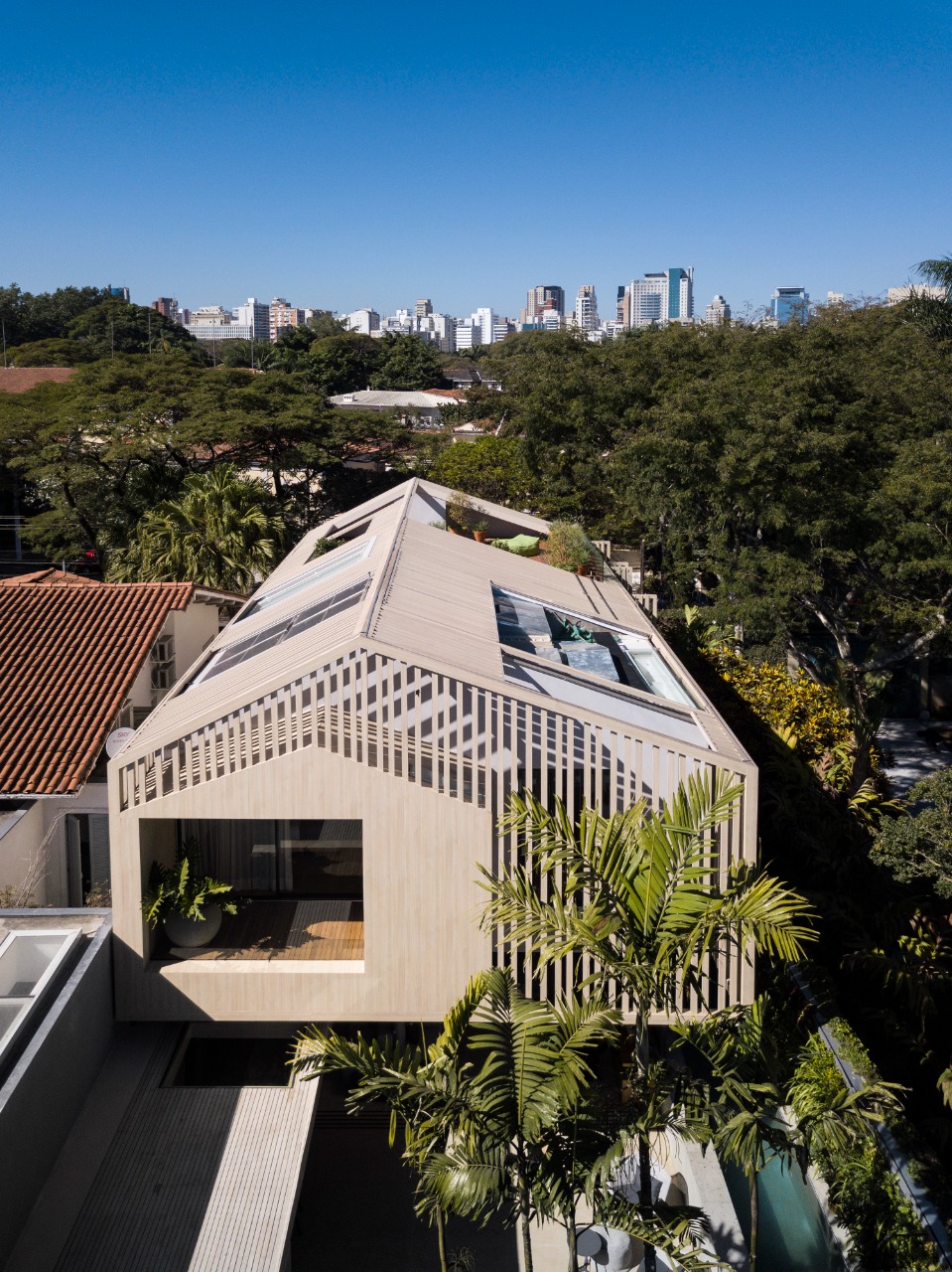 Em meio a copa das árvores, surge a Casa GGL com sua aparência contemporânea, a partir de seu formato retangular com telhado duas águas, que remete às casas tradicionais brasileiras. Localizado no Jardim Paulistano em São Paulo, o projeto foi inserido em um terreno de 450 m², de forma estreita e comprida, tudo pensado para o melhor aproveitamento do espaço.