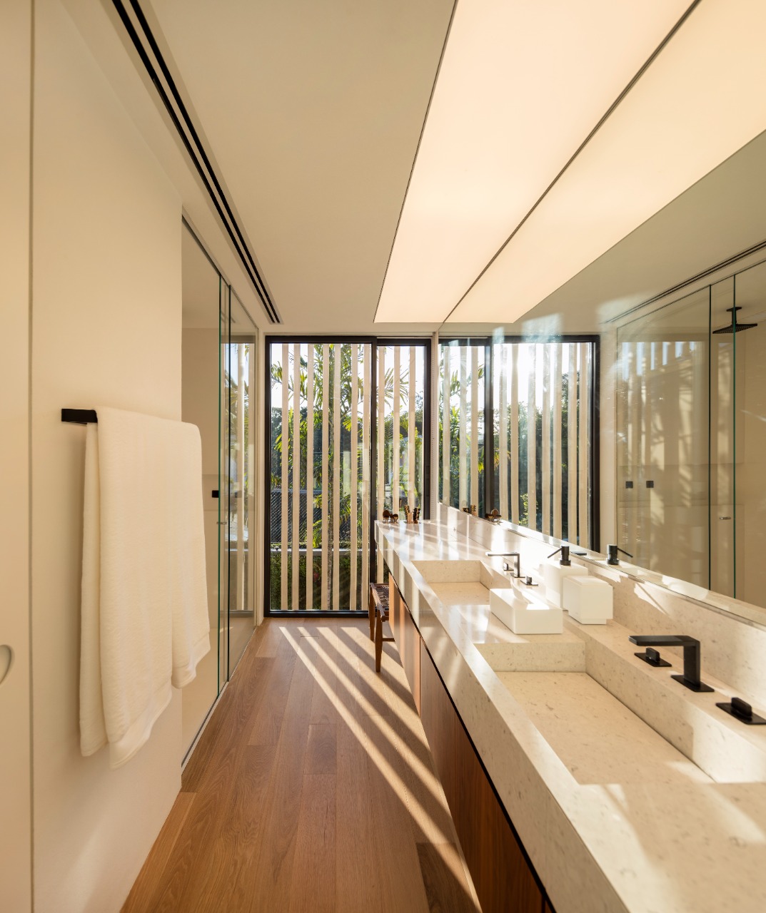 O banheiro da suíte máster recebe em abundância a luz natural.