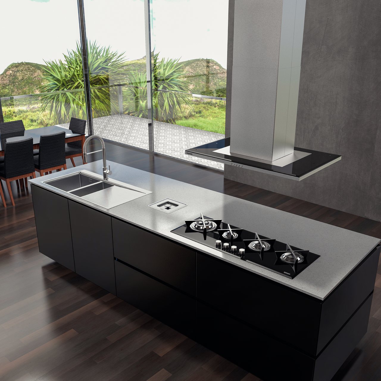Oferecendo sofisticação à cozinha pelo visual slim com vidro bisotada, a coifa Tramontina Slim Isla 90 vem em dois diferentes modelos: a Slim Isla 90 e a Slim Isla 90 Split – ambos para serem instalados em cozinhas de ilha.