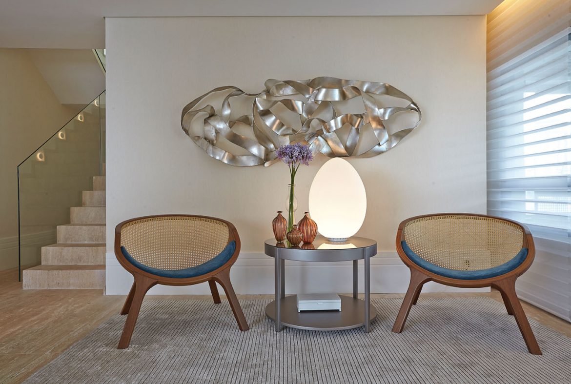 Peças de personalidade enriquecem projeto que recebeu revestimentos nobres e reconfigurou mobiliário já existente