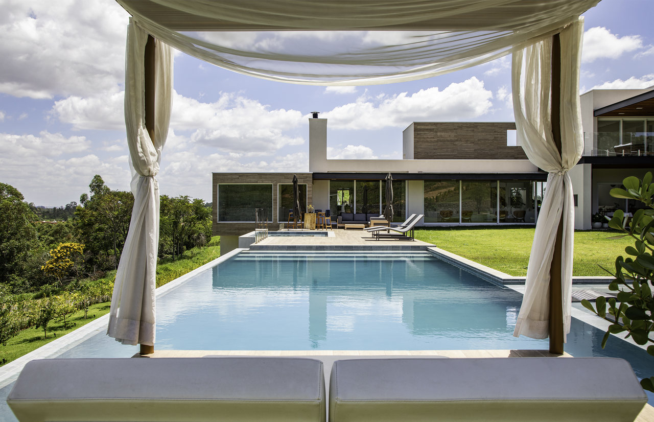 Nos projetos contemporâneos, as piscinas com prainha são as essenciais para tomar sol. As com SPA são ótimas opções para relaxar e curtir os dias quentes. A borda infinita também é muito procurada por valorizar a vista não só de quem está na piscina, mas de quem está na área externa, contemplando a paisagem.