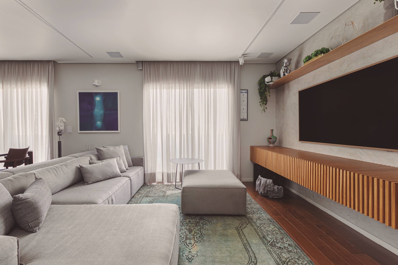 Com vista para parque de São Paulo, cobertura de 240 m² ganha toques expressivos de cor com projeto moderno e atemporal