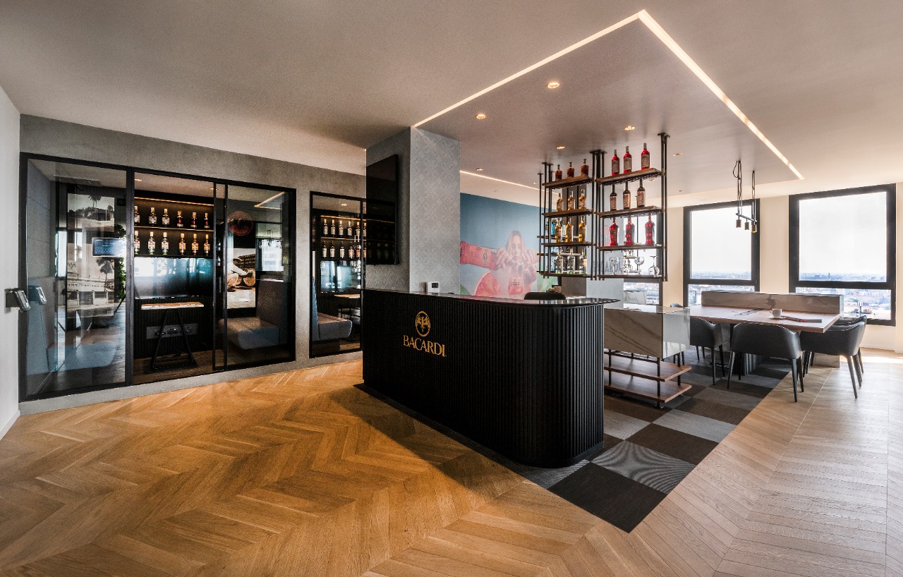 “Decodificar os momentos icônicos em que as pessoas entram em contato com mais de 200 marcas da Bacardi nos permitiu identificar o que essas marcas significavam para os consumidores. Nós os nomeamos “Momentos Vivos”, traduzindo-os em espaços temáticos para escritórios físicos da nova sede. Isso dá origem ao Lar, Clubar e Destilaria, os espaços complementares de um lugar caracterizado por uma forte identidade, que representa uma variedade de marcas da Bacardi em três momentos fundamentais da vida: a família, o convívio e o patrimônio. Dessa forma, o espaço também se torna uma vitrine dos melhores selos ”, enfatiza Michele Pini, líder da equipe e associada da Il Prisma BU Destination. A área denominada “Lar” possui uma atmosfera para que os visitantes se sintam em casa e em harmonia com o DNA da Bacardi. O “Clubar” é um local de relaxamento e de convívio, inspirado na cultura de coquetéis milaneses. Já a “Destilaria” prova a essência da marca. Criado para sediar reuniões, o espaço expõe a história da Bacardi através de seus rótulos mais consolidados, como Grey Goose e Bombay Sapphire e, também, as marcas emergentes como St. Germain, Leblon, entre outras.